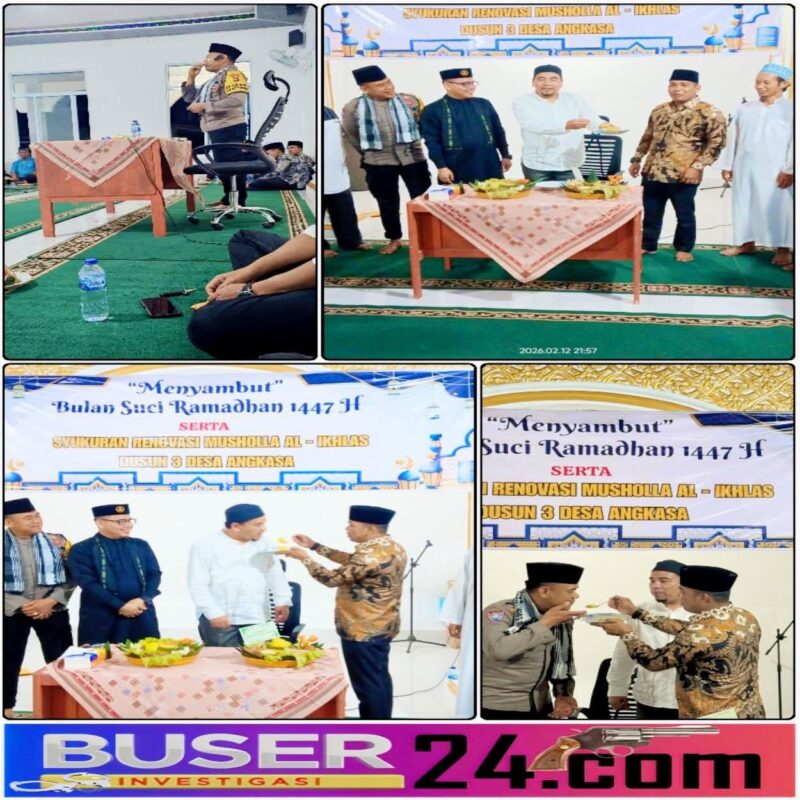 Dalam rangka mempererat silaturahmi serta menjaga situasi kamtibmas yang kondusif menjelang Bulan Suci Ramadhan 1447 H, Bhabinkantibmas Desa Angkasa, AIPDA Marmin, SH, menghadiri kegiatan Penyambutan Bulan Suci Ramadhan sekaligus Syukuran Renovasi Mushollah Al-Ikhlas, Kamis malam (12/02/2026) sekira pukul 20.10 WIB hingga selesai, bertempat di Mushollah Al-Ikhlas Desa Angkasa, Kecamatan Bandar Petalangan, Kabupaten Pelalawan.