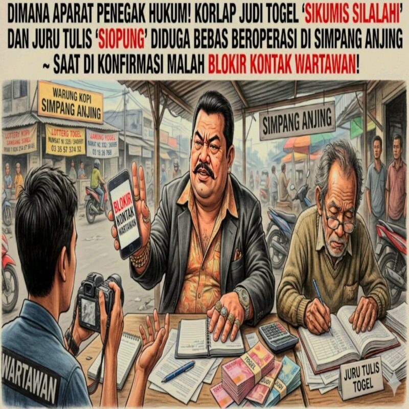 Aktivitas perjudian jenis togel yang diduga dikoordinir oleh seseorang yang dikenal dengan nama “Sikumis Silalahi” sebagai koordinator lapangan (Korlap) bersama juru tulis yang disebut “Siopung”, dikabarkan masih berlangsung di kawasan Simpang Anjing RT: 01 RW: 03