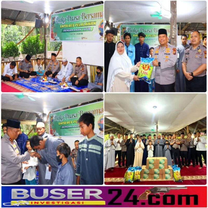 Riau – Kapolres Pelalawan, AKBP JOHN LOUIS LETEDARA, S.I.K, bersama dengan Wakapolres Pelalawan, KOMPOL ASEP RAHMAT, S.H., S.I.K., M.M, dan para PJU Polres Pelalawan, melaksanakan buka puasa bersama dengan anak-anak Panti Asuhan Yayasan Salsabila Kec.Pkl. Kerinci Kab. Pelalawan pada Senin (23/2/2026).