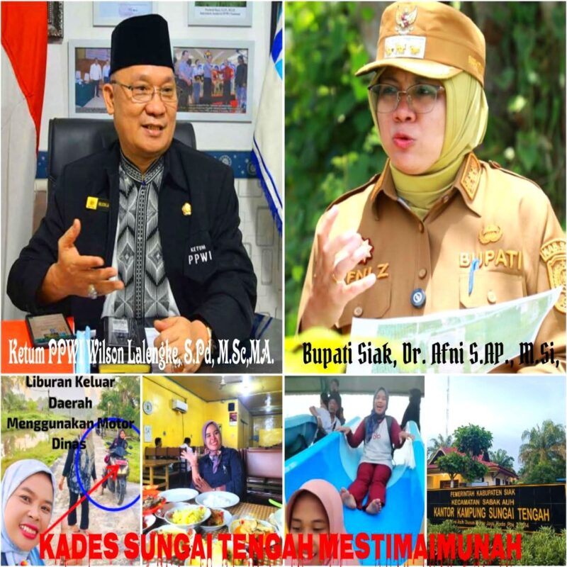 Kepada Bupati Siak, ibu Dr. Afni S.AP., M.Si, saya Wilson Lalengke, S.Pd., M.Sc., MA sebagai Ketua Umum Persatuan Pewarta Warga Indonesia (PPWI) Menyikapi meminta dengan tegas agar segera melakukan evaluasi menyeluruh terhadap kinerja “MESTIMAIMUNAH” sebagai Kepala Desa Sungai Tengah beserta tata kelola pemerintahan desanya. Dalam kondisi desa yang sedang berpolemik, kepemimpinan yang responsif, transparan, dan hadir di tengah masyarakat adalah sebuah keharusan, bukan pilihan.