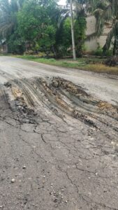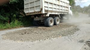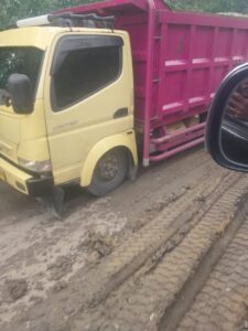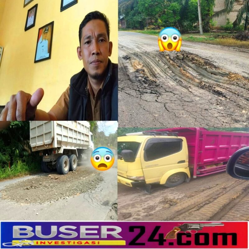 “Kalau mobil terpuruk di jalan berlumpur itu biasa, namun kalau mobil terpuruk di atas aspal itu kan sudah luar biasa jalan berlobang, yang sangat mengganggu pengguna jalan dan setiap hari ancaman terhadap keselamatan berlaku lintas akibat jalan rusak” Ungkap Darwan, S.Pd