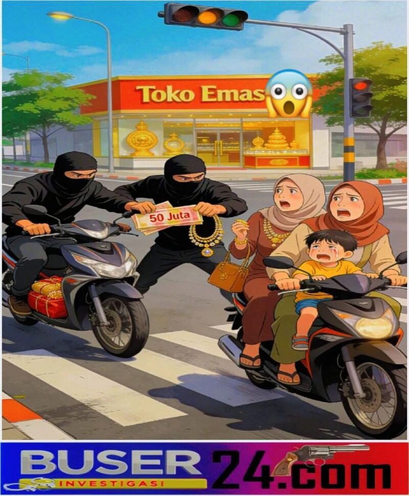 Peristiwa tersebut menimpa seorang ibu yang saat itu sedang mengendarai sepeda motor bersama anaknya yang masih kecil. Berdasarkan informasi awal, korban diketahui membawa uang tunai sekitar Rp50 juta serta beberapa perhiasan emas.