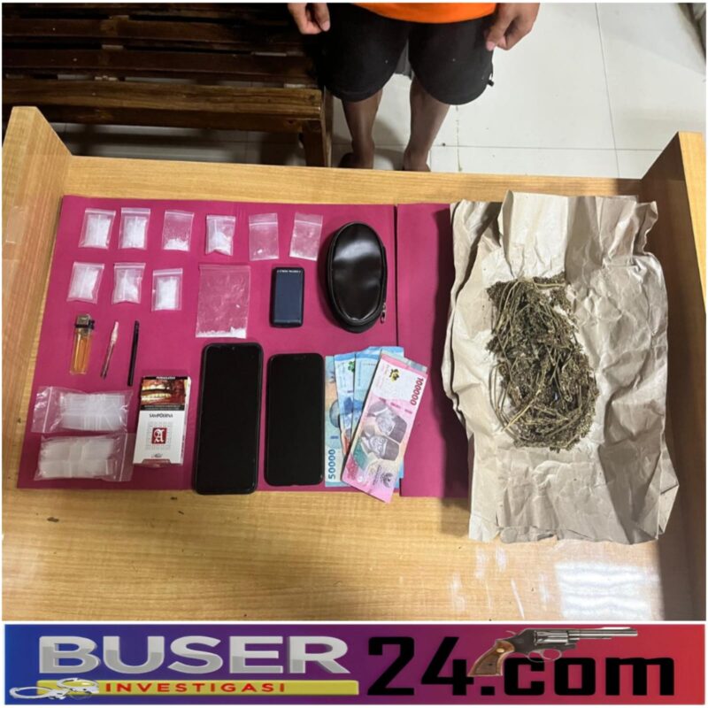 Di lokasi kedua, petugas kembali menemukan sembilan paket sabu yang disimpan dalam dompet kecil, serta satu bungkus narkotika jenis daun ganja kering. Selain itu, turut diamankan sejumlah barang bukti lain berupa timbangan digital, kaca pirex, sendok dari pipet, plastik klip, dua unit ponsel, mancis, dan uang tunai sebesar Rp350.000 yang diduga hasil transaksi.