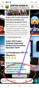 Dalam perbincangan sebelum saya bersama salah seorang tokoh masyarakat desa meranti yang tak ingin di sebutkan namanya di dalam berita ini mengobrol di malam hari dalam group “Jeritan Suara Rakyat” tokoh itu bilang “bosan baca berita trus kirimkan uang ajalah” sambil bercanda dan saya membalasnya dengan stiker tertawa dan saya balas dengan “oke siap sabar ya pak’e insya allah ntar kalau ada uang akan saya kirimkan sama pak’e dan tidak lama siti mukhofila tiba-tiba WA saya secara pribadi malam itu juga dengan mengatakan :