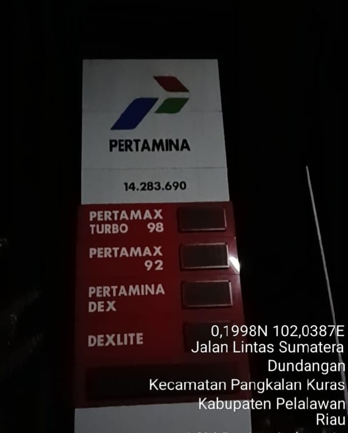 SPBU 14.283.690 yang terletak di jalan lintas Timur, Desa Dundangan, kecamatan Pangkalan Kuras, Kabupaten Pelalawan di laporkan ke Polres Pelalawan, Rabu, 04/03-2026.